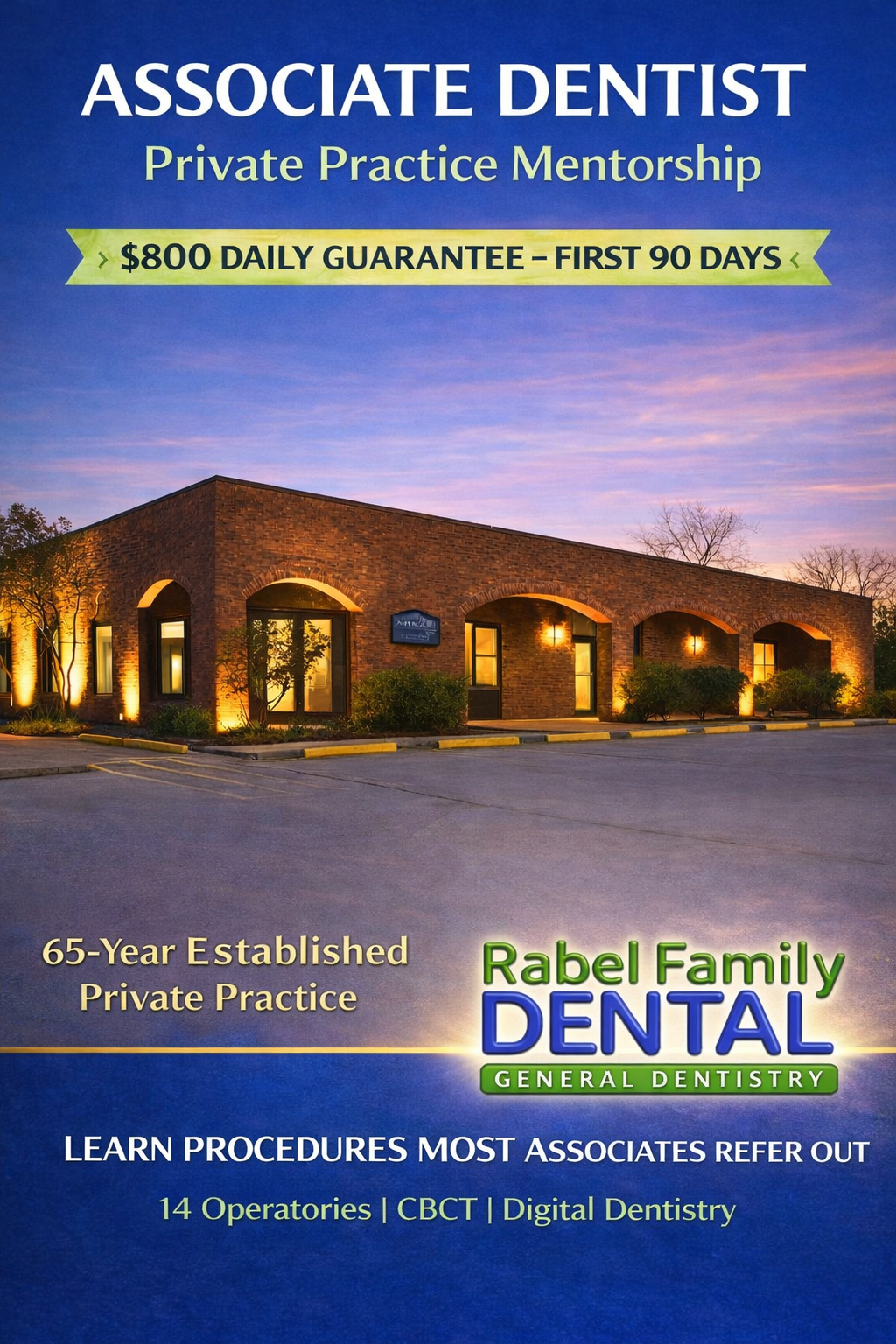 1800 Sq. Ft. Four-Operatory Dental Practice for Sale in Baton RougeAsking price is $325,000. Owner is retiring and preference is for a complete transition 60-90 days after agreement. This is a turn key opportunity including equipment, computers, furnishings, inventory, and management/digital software. The lease on the office space is transferable. Contact the dentist's accountant for more information by email: jguerin@appleguerin.com. (1/1/2026) |
